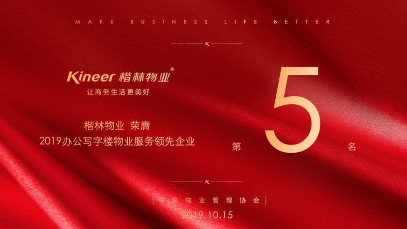 2019年10月15日,由中国物业管理协会主办的“第五届中国物业管理创新发展论坛”在深圳隆重举行,本次论坛以“数字经济下的物业服务创新”为主题,论坛上发布了《2019物业服务企业发展指数测评报告》,楷林物业凭借在写字楼物业领域的专业与专注,